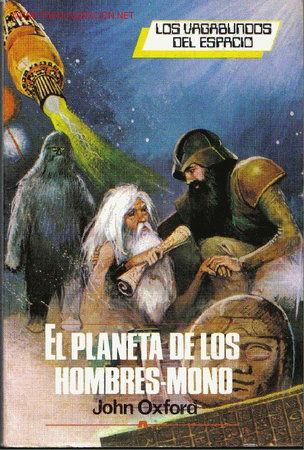 A este le siguieron otros cómics de súper héroes hasta que un maravilloso día, cuando ya era más mayor, nos fuimos de mercadillo a intercambiar novelas que mi padre ya había leído. Ese día compré mi primer libro (elegido por mi y pagado de mi asignación): El planeta de los hombres mono, de Jonh Oxfor. Era el segundo o tercer libro de una saga (en aquellos tiempos ya me dejé liar XD) y me fascinó. La historia no era original, la trama era muy sencilla y los personajes bastante estereotipados pero os juro que llegué a aprendérmelo de memoria de lo mucho que me llegó a gustar. Acabó desencuadernándose y se desencolaron las hojas pero yo lo releía una y otra vez.